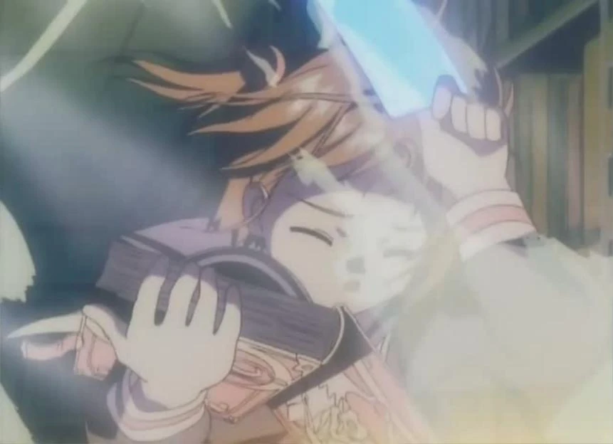 Sakura regresa a su casa y encuentra una nota diciendo que su padre regresará tarde. Su hermano tampoco está, así que Sakura está sola en casa. De repente, escucha ruidos viniendo desde el sótano. Con su bastón, baja a éste, que es una biblioteca. Busca por todos los corredores, pero no encuentra a nadie. Sin embargo, ve que un libro está brillando. Lo toma, y para su sorpresa es el libro que vio en su sueño.