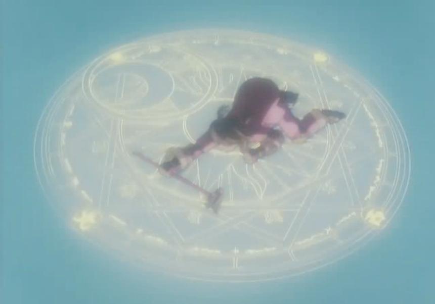 Kerberos le pregunta el nombre a Sakura. Luego de saberlo, Kerberos comienza a brillar, y todo se pone oscuro, salvo por una insignia en el suelo. Kerberos invoca a la llave del sello, y una pequeña llave sale del sello del libro. Kerberos le dice a la llave que Sakura está dispuesta a aceptar la misión de reunir las cartas. Kerberos grita, "¡Libérate!" y la llave se transforma en un báculo. Sakura lo toma, y Kerberos, para el terror de Sakura, dice que es una Card Captor.