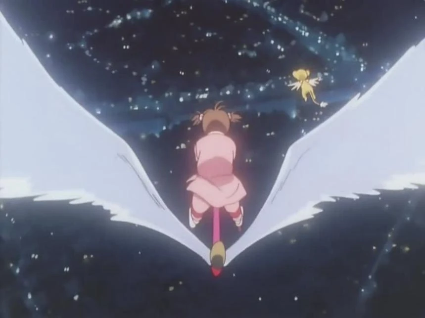 Sakura y Kerberos vuelan en la noche.