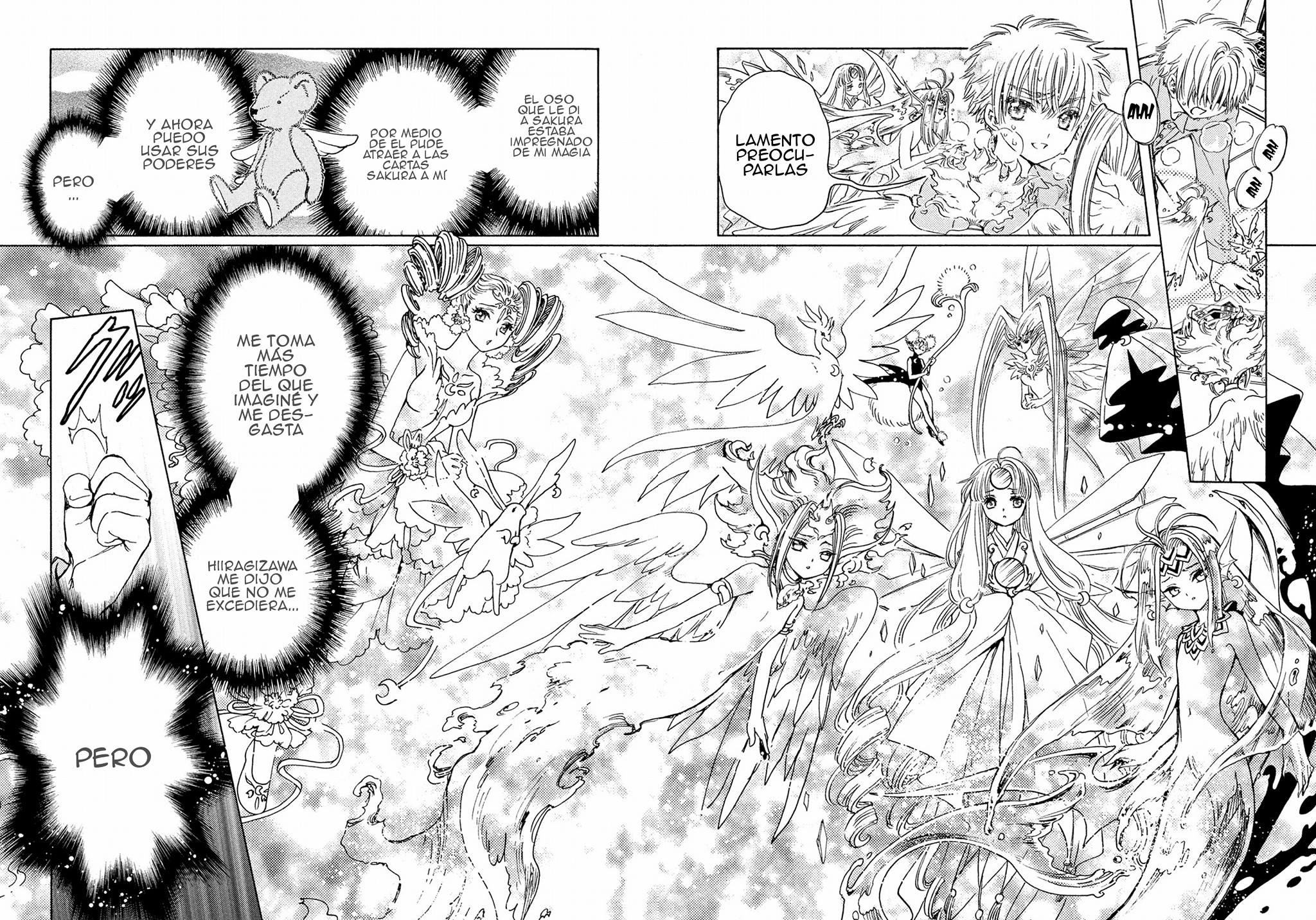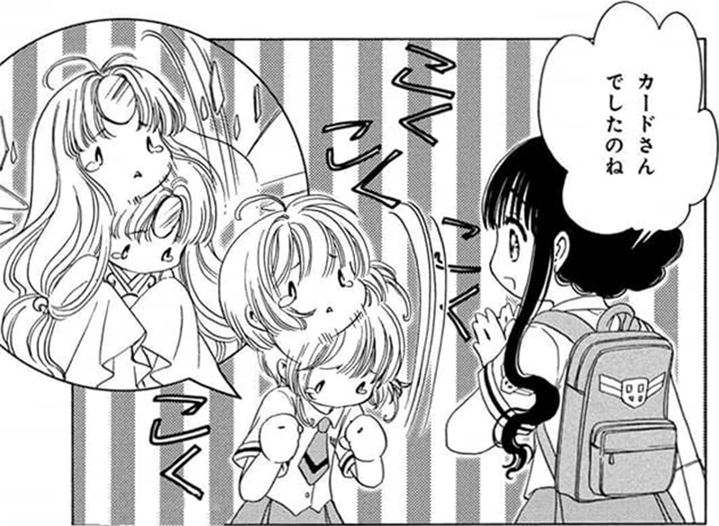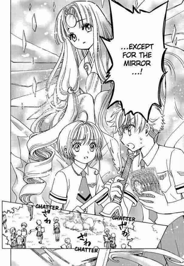 En el manga, Sakura está enferma, pero aun así va a hacer frente a una niebla misteriosa creada por Eriol, entonces para cubrir su ausencia transforma Espejo en una carta Sakura y la usa para suplantarla.