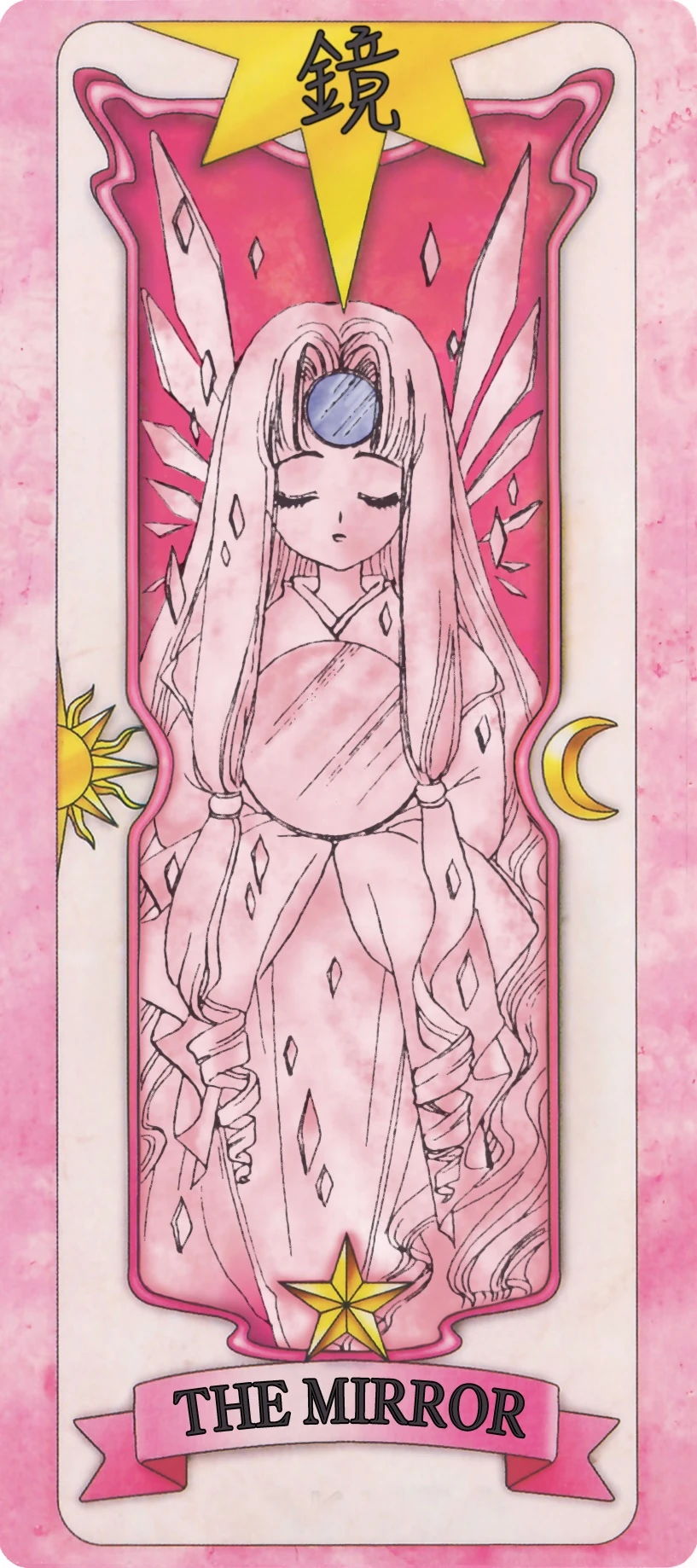 En su forma de carta, el Espejo tiene la forma de una hermosa niña de pelo muy largo y recogido en dos coletas largas, rodeada de trozos de vidrios que pertenecieron a algún espejo, tiene un pequeño espejo circular (en el manga)/tres cristales (en el anime) en la frente, siendo estos la parte coloreada de la carta en su forma de Carta Clow, y sostiene en sus manos otro espejo redondo un poco más grande.